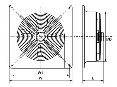 Этот осевой вентилятор идеально подходит для использования в производственных, складских и крупных торговых помещениях. Установка его осуществляется максимально просто благодаря квадратной монтажной пластине, а черный цвет деталей добавляет ему стильности.